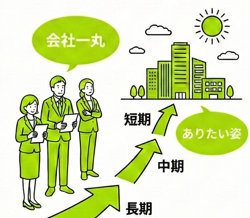 月次決算で『現状』を認識し、『ありたい姿』に臨む経営課題を明確にし、中長期の事業計画を編成します。